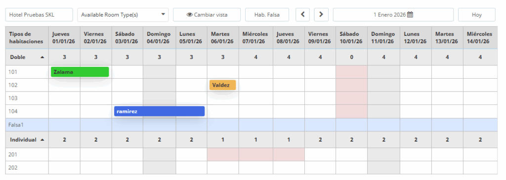 - Cambiar vista. Al clicar en él desaparecen las habitaciones y queda más claro el dato de habitaciones disponibles por día y tipo de habitación.