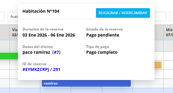 Basta clicar en una reserva concreta para ver los datos principales de la reserva.