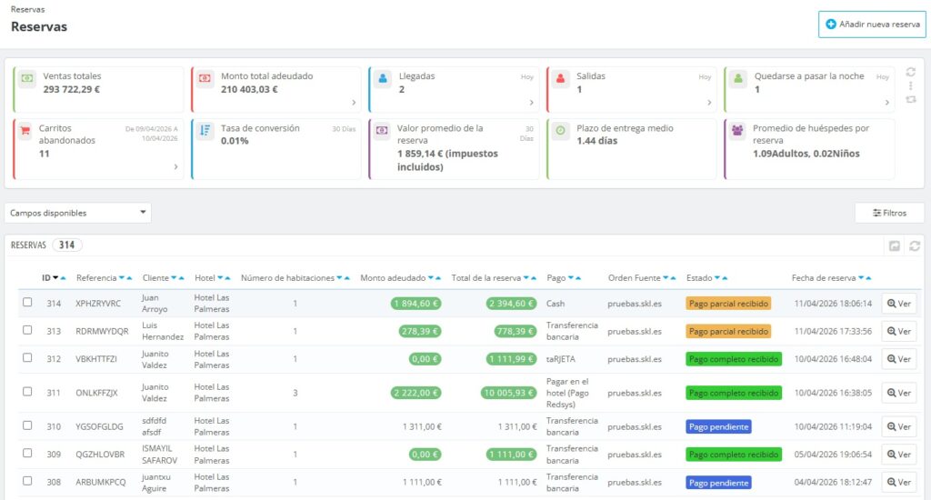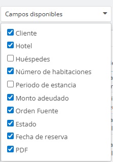 - Importe total adeudado : Este campo indica el importe total que falta por abonar en las reservas existentes.