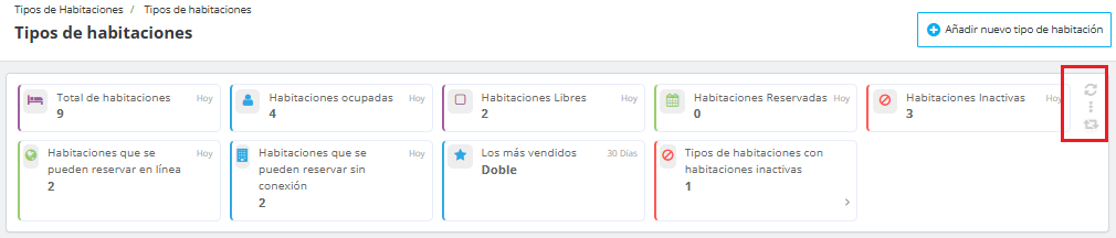 - Tipos de habitaciones inactivas : Indica el número total de tipos de habitaciones que tienen alguna habitación inactiva.