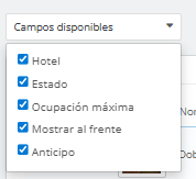 Hay otro botón de filtro a la derecha para facilitar la búsqueda del tipo de habitación que interese. Para su uso especialmente por hoteles y grupos de hoteles con muchos tipos de habitación. Incluye los siguientes campos