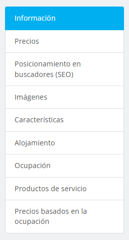 - Descripción: Es una descripción más extensa que le aparece al huésped en el motor de reservas cuando clica en ver detalles de la habitación.